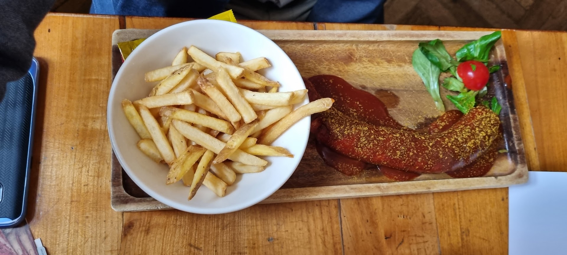 An einem anderen Tisch wartete eine Dame vergeblich auf Besteck. Sie musste ihren leberkas mit der Hand essen da er sonst komplett kalt geworden wäre.