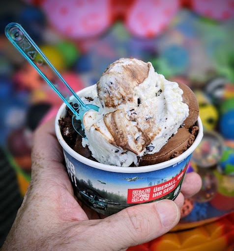 Die Sorten sind vielleicht nicht die abenteuerlichsten, aber eine schöne Mischung, die für jeden etwas passendes bereithält. Wir haben uns inzwischen durch alle Sorten rauf und runter probiert und sie waren ausnahmslos alle lecker und schön cremig. Das Eis hat einfach eine sehr guten Qualität. Toppings wie Streusel und Saucen machen zusätzlich Spaß. Besonders toll sind die Eiswaffeln mit Schokolade und wahlweise Krokant, oder bunten Streuseln. Eisbecher in den verschiedensten Variationen gibt es natürlich auch.