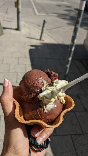 Simply my favorite gelateria in Munich so far. I've tried a few of their flavors - mainly the chocolate(oh so rich and creamyyyyy), peach sorbet(so refreshing) , white chocolate and pistachios (It's nothing like anything I've ever tasted, the textures omg so tasty)- simply delightful. You can taste the richness, quality and decadence. Simply love it!!! They always give a spoon of a flavor of your choice to try, where you discover some more. They have a lot of summer sorbets which are all vegan, which is amazing if you are a vegan. I have only had a great experience so far, and the girls at the shop have so far always been very friendly and smiling which is certainly a plus. Right around the corner of the shop, there are some wooden benches to sit and enjoy. Highly recommend if you are ever around...