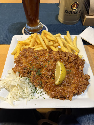 The schnitzel was the best I have had while visiting, with a nice corn flake crispy crust. It was truly delicious. The fries were good, but the schnitzel was the star of the show. Nice German beer on tap as well! Would love to come back the next time...