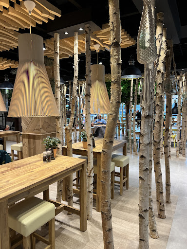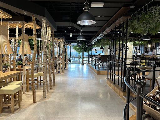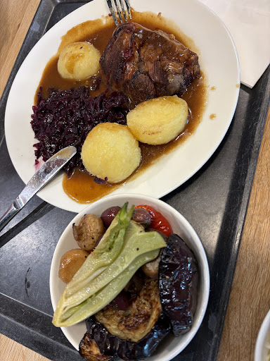 Selbstbedienungsrestaurant an der Südseite im 2.Sock des Möbelhauses. Chic ausgestattet mit hölzernen Ständen so weit das Auge reicht, die Auslagen sind vollgeschichtet mit Gemüse, Obst und Backwaren, offene Küche, jede Ecke ist liebevoll dekoriert. Vor allem gleich am Eingang steht ein dekorativer alter Sudkessel mit Holzbierkisten, Bügelflaschen und alten (Steingut-)Bierkrügen: Da bleibt jeder 'Herr der Schöpfung' zum Ansehen stehen !! Super auch die 'Aufteilung' des Gastraums: Tws. mit Birkenstämmen, Zäunen, Emporen und heller Bestuhlung ist der Raum hervorragend aufgeteilt. Leider waren die Sonnenschirme auf der schönen großen Südterrasse Mittags am 26.Mai 2023 trotz gutem Wetter noch nicht aufgespannt Ich war hier zum letzten Mal in der Spargelwoche im Mai'2023. Dank diverserer Coupons in Werbe-Prospekten, kostete eine Portion Schweineschitzel mit Spargel, Kartoffeln und Sauce Hollandaise nur 3,90 €, den günstigen Preis der Spargelquiche mit weißen und grünem Spargel weiß ich leider nicht mehr und zum Nachtisch einen Johannisbeerentaler mit einem Becher Café für 1,90 €. Die Qualität des Spargel fand ich hervorragend: Keine braunen Stellen, keinerlei 'holzigen' Stücke und genau bissfest gekocht - Superlob !! Man kan sich auch das Essen in einer Syropor-Box mitgeben lassen. Ganz klasse find' ich ja den 'Höffner-Shuttle' von/bis Pasing Bhf oder OEZ West. Insgesant sehr freundliches Personal bei der Essensausgabe und an der Kasse - hatte bisher nur einmal eine 'Stink-Stieflette' beim Abkassieren: Wörtlich - ohne vorher zu grüßen - 'Für den Cappuccino müssen's aber trotz Coupon x-Cent mehr zahlen !' Der entsprechende Bewertungszettel über diese Person landete postwendend in der 'Mecker-Box' am Eingang ! Insgesamt aber eine nette, ruhige Atmosphäre zum Mittagessen oder...