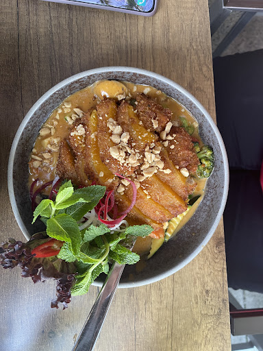 Was having it on my radar for quite a while and finally stopped by for weekend lunch. Setting very standard for the majority of newly opening restaurants in Munich, but a pleasant ambience overall. Seitan curry was marvelous, with just right spicing, rich texture and plenty of veggies. On contrary, Bun Rice Noodle bowl and Spring rolls were lacklustre and just ok at its best. But all in all, it comes down to the service. Looks like, unfortunately, service staff had more interest in telling us that they can accommodate us „only till 18“, than to deal with us on any occasion afterwards. Perhaps, it was just our table, as I have heard questions whether people liked the dishes at the neighboring ones.No involvement whatsoever in our case, not a single smile. Having 4 people talking at the bar while I was patiently waiting to get eye contact with at least someone for 15 min so they bring me the check (and we can eventually leave and fit so much highlighted 18 curfew timing), i thought that I have seen it all. Apparently not, as curry that I asked to pack as a takeaway…only had curry, no rice 😬 The...
