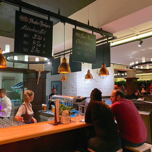 Also ganz ehrlich... Der Empfang war schon mies, aber die Bedienung war noch schlimmer. Wir bestellten erst Getränke, soweit normal. Dann kam er kurze Zeit wieder und wollte die Speisen aufnehmen. Mein Partner bestellte die Stift´ls Brettl als "Vorweg", so wie es in der Speisekarte steht. Dann fragte ich, ob es den Müncher Schweinsbraten auch mit Kartoffeln gibt, statt Knödel. Er meinte, es gibt keine Kartoffeln, nur Spätzle und Knödel oder Pommes. Als ich fragte, wieso es zum Lachsfilet kleine Kartoffeln gibt, wenns denn keine Kartoffeln gibt? Da meinte er, dass seien Bratkartoffeln. Ich bestellte dann Bratkartoffeln dazu und er ging los, ohne noch meinen Partner zufragen, was er essen möchte. Mein Freund völlig verdattert und fragend mich angeschaut. Ich dann den Herrn Servicekraft hinterher und sagte ihm dann noch, er solle doch zwei mal Müncher Schweinsbraten bringen, einmal mit Knödel und einmal mit Kartoffeln. Alles klar. Es kam unsere Vorspeise und wir fingen an zu essen. Wir hatten nicht mal die Hälfte von der Vorspeise, da kamen zwei kleine Schalen mit Weisskraut. 1 Minute Später stand unser Hauptgang neben uns auf dem Tisch, obwohl wir noch nicht mal unsere Vorspeise ansatzweise fertig hatten!!! Das war die Härte. Es kam, wie es kommen musste. Unser Hauptgang war abgekühlt. Mega schlecht. Für den "netten" Empfang und den Service, gibt es 0 Sterne.