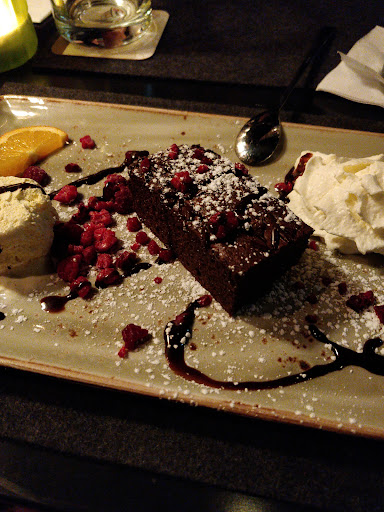 Zur Einrichtung kann ich nur sagen: anders, modern, zeitgemäß und gefällig. Lediglich zum längeren Verweilen lädt das Sitzen auf Bänken ohne Rückenlehne nicht ein. Es gibt auch Menschen mit Rückenproblemen, die nach einer gewissen Zeit eine Lehne brauchen, da sie sonst Rückenschmerzen bekommen. Hier könnte der Betreiber bzw. Francisegeber mal über das Konzept der Sitzmöbel nachdenken, schließlich sitzt man in einem Restaurant und nicht im Biergarten.