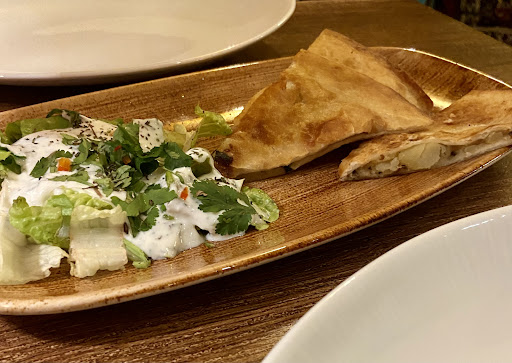 All of us ordered lamb dishes of different types and all of them were delicious, especially the grilled lamb. I ordered the Safran Tschalau Goscht. The dish was a bit sweet because of the plum and rhubarb, but also spicy. The dish had a really good balance to it. We also ordered Bolani Katschalu as a starter. This dish was surprisingly delicious. Simple, yet delicious. The yoghurt dip that came with it perfectly complimented it. I highly recommend this dish.