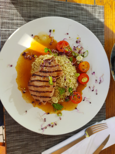 Read moreWir gehen sehr gerne Mittags hier her. Einiges aus der normalen Speisekarte wird günstiger angeboten, dazu ein täglich wechselndes Gericht mit Getränk für ca. 11€. Das Essen schmeckt ausgezeichnet; man merkt, dass die Qualität eine gute ist. Auch die Bedienungen sind super lieb, man fühlt sich sofort wohl!!! Einzig die Atmosphäre könnte für meinen Geschmack etwas gemütlicher sein - aber gut, so wie es ist, ist es eben der Stil auch des dazugehörigen Hotels. Viele Leute mögen...