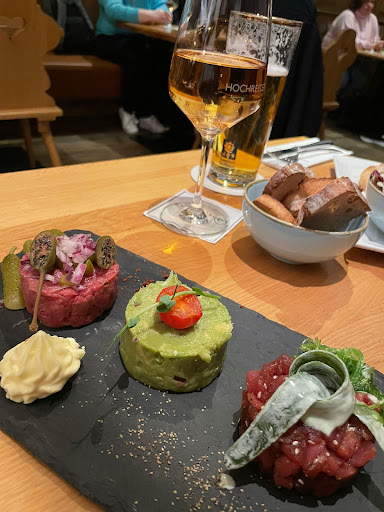 Das Bier schmeckte frisch und war gut eingeschenkt. Die Weinempfehlung zum Dreierlei Tartar war passend und gut. Neben dem Dreierlei Tartar wurde eine Pinsa und eine zum Abschluss eine Käseplatte bestellt.