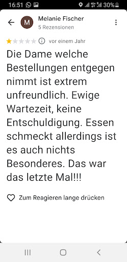I thought she doesn't understand English hence called my husband to explain in German .. she was not friendly and jz say it is difficult to my husband ..and Chuck my phone + threw the menu on the table to me .. so rude