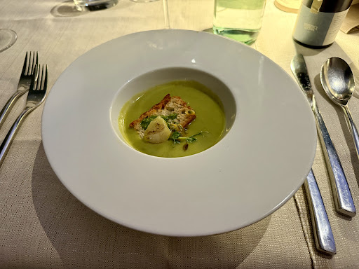 Read moreMit großen Erwartungen sind wir hierher gekommen, da die Bewertungen so super sind. Leider wurden wir enttäuscht. Schon auf die Speisekarte mussten wir 20 Minuten warten, dann weitere 20 Minuten bis wir bestellen konnten. Es gab vorweg kein Gruß aus der Küche und das Brot (1 kleine Scheibe Baguette für jeden) mussten wir zur Vorspeise dann erfragen. Der Aperitif wurde zügig serviert, war aber lauwarm. Wir hatten noch nicht mal ausgetrunken, da kam schon der erste Wein, der zur Vorspeise im Rahmen der Premium-Weinbegleitung gereicht werden sollte. Das Glas war dann schon leer als 20 Minuten später endlich das Essen kam. Die Jakobsmuschel musste wahrscheinlich für alle 4 am Tisch reichen, so klein war sie. Die angekündigte Erbsencreme entpuppte sich als lauwarme dickflüssige pampige Suppe. Außerdem war sie versalzen. Die Ravioli im 2. Gang waren gut und auch heiß. Die vegetarische Alternative zum Hauptgang war so übersichtlich, dass ich anschließend noch hungrig war. Der zum Ibericofilet servierte Weißwein passte zum vegetarischen Gericht überhaupt nicht. Die Weinbegleitung insgesamt war eher unprofessionell. Für den Preis von 30 € hatte ich mehr erwartet. Das auf der Karte beschriebene Dessert gab es nicht mehr. Ohne dies anzukündigen oder nachzufragen wurde eine Alternative serviert. In einem solchen Restaurant hätte ich das nicht erwartet. Insgesamt kamen wir uns vor, wie Gäste 2. Klasse. Keine Nachfrage, ob alles in Ordnung ist, lange Wartezeiten und am Ende mussten wir die Rechnung vom Chef (?) oder Kellner erbetteln, der nebenan am Tisch anscheinend beim Stammgästen saß und sich unterhielt. Eine Empfehlung kann ich leider nicht aussprechen und wiederkommen werden...