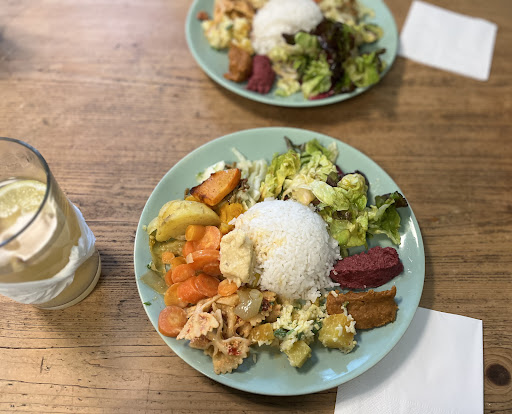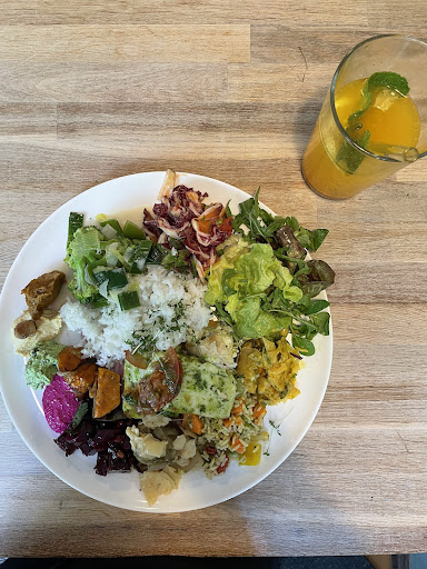 Read moreLeider nicht mehr was es mal war. Früher gekochte und gut gewürzte vielseitige Variation von Sachen auf dem Teller u gute Stimmung dort und freundlich. Die letzten Male bestand der Teller fast nur noch aus einem Berg trockenen Reis, dazu miniklecks Sosse mit 2-3 Scheiben Zuccini, ein paar zusammengefallenen Salatblätter (zu lang im Dressing) und Kohlenhydrate wie Kartoffeln oder Nudeln ungewürzt. Öfter auch Rotkohl ohne Dressing oder Bohnen aus Dose ungewürzt und 2-3 Minikleckse demselben Aufstrich. Wenn ich mehrere Tage nacheinander dort war sah ich oft Reste von anderen Tagen (soviel zu es wird frisch gekocht). Auch die Kuchen nicht mehr das was sie mal waren. Ständig Brownies und nicht frisch sondern aufgetaut, weil ich schon noch gefrorene Stücke für to go bekommen hatte. Außerdem scheint das Personal überfordert zu sein, es ist chaotisch und der Teller wird einem unfreundlich hingestellt und auch nicht mehr schön angerichtet, nur noch draufgeknallt. Schade, dafür ist mir dann wirklich mein Geld zu schade u ich komme...