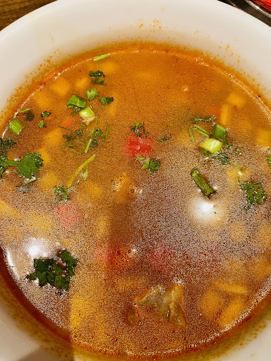 If I'm going to be really honest, Uyghur food induces a very unique feeling, personally: It feels like trying out a new, unique experience, yet simultaneously gives a very familiar feeling. To add to that, the cuisine itself utilizes techniques that not many people can do it to preserve authenticity, and so, got to try Kashgar Uyghur. So far, I'll admit the experience was a rather lovely one. To clear some confusion regarding the layout of the restaurant itself, it is located on the floor above where you can enjoy the cuisine; the first floor is where you can grab a quick Döner and other fast food. Given the love for how exquisite the cuisine is, a reservation is absolutely recommended, especially if you are planning to spend some time there on a weekend! The place can get really crowded, and it's no surprise why. The menu is what you can expect Uyghur cuisine to be: flavorfully diverse. If you're someone who enjoys Central Asian, or East Asian cuisine, or BOTH for the matter, it's a treat. Given that I had previously tried Laghman, it was time to challenge myself a little further and ordered a bowl of Dapanji (or, in Uyghur language, toxu qordiqi). And to be honest, it did feel a little surprising as that dish is usually for groups, but they had an option for solo, too! And because how can I say no to barbecue, I got some kawap skewers on the side and some Lung Bai Cha as a compliment to a chilly evening. As a side note, it's tantalizing to dip kawap pieces in Dapanji soup, like sauce 😉 The food actually felt that it was prepared with love, and the ingredients that were used to prepare the dishes felt fresh. And for a cold night, what's better than some warm soul food, right? And I was honestly surprised with the prices, given how most eateries in Munich have their options priced; in all fairness, for the portion sizes served, the prices felt really fair for something that isn't fast food. To summarize this, if you're into halal East Asian food, and actually want to try something new while also having a deja vu, Uyghur food is for you, and props to the restaurant for having it all covered, from the food to the service...