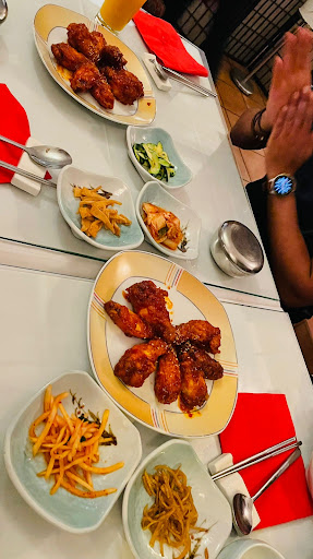 Read moreThe food was tasty, but a little over-priced for the quality. Indeed my brother and I struggled to locate any meat in the bibimbap we ordered, contrary to what was advertised on the menu. Most disappointing, however, was the service: the staff were rather brusque and aloof with us, and they not only whisked our plates away within seconds of my putting down my chopsticks and but also forced the bill on us before we had even had time to think about whether we might have liked dessert and coffee. Hardly welcoming. Tip: Don't bother asking for tap water - we did, and were told curtly that we could share one glass between us. Considering we had already ordered other drinks and were spending around 30 EUR in this establishment, the small glass of lukewarm water that was placed on our table struck us both as a rather...
