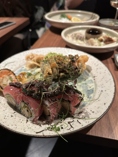 Read moreReally bad quality! The plates were presented nicely but the quality of every single dish wasn’t up to standard. Soft shell craps tasted very old and the whole restaurant smelled like fried food. Yellowtail sashimi was super fatty and bad quality, truffle paste on radish, what a combination! Beef skewers made of way to big meat chunks that you couldn’t even chew them because the meat was so tough. Spicy tuna roll was ok but and other sushi was ok. The service lady was touching the plates behind the counter giving their final touches before bringing them out without ever washing her hands. Not hand towels in either bathrooms, no soap in male bathroom and old sponges laying around. The service lady was carrying water bottles under her armpit instead of using a tray. Overall a real disaster! Don’t...
