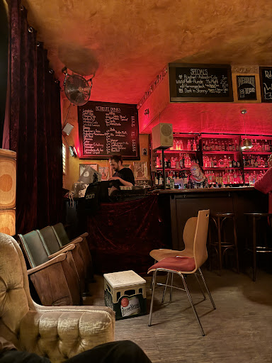 Die WC sind ranzig und das Personal könnte mal öfters aufräumen gehen. Die kleine Bar ist viel zu warm und schlecht gelüftet. Der Raum ist mit Retrosachen ausgestattet und es ist eine Kneipe, keine Bar. Mal was anderes als die durchgestylten Bars, die man sonst so kennt. Aber vor alten, durchgesessenen Sitzgelegenheiten sollte man sich nicht fürchten.