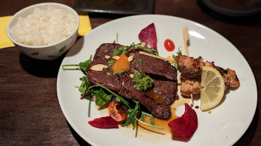 Read moreKushi-Tei is definitely an experience. It definitely brings the Japanese vibes in the middle of Munich. While the portions are really small, the flavours on the other hand are huge. You can taste the freshness of the raw food and the perfectly matching seasoning from the hot dishes. The charcoal after taste gives an extra punch to the grilled dishes, which is definitely a bonus point in my opinion. We decided to order the Menu C in order to taste a bit of everything. While the starters did not look great, the seasoning of the salad was pretty good, but the big surprise here was the miso soup. The first entree, which consists in 3 slices of sashimi (salmon) were fresh and tasty. The second entree was some sort of fried chicken, which was crispy and not soggy. Amazing flavour by the way. Then main dish has 3 different types of meat, bit of greens and rice. The flavour here was out of this world. We thought we would be starving afterwards given the portion sizes, but at the end we were really satisfied and happy with the menu. The only negative point is the price. It is, even for Munich, really expensive given the amount of food you are ordering. But I guess quality comes with a price. If I could, I would give 4.5 stars.