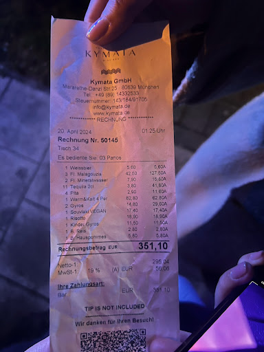 With its enchanting ambiance, superb culinary offerings, and prime location, Kymata stands as a beacon of Greek gastronomy in Munich. It’s a place that marries the warmth of Greek hospitality with the finesse of modern dining. Kymata isn’t just a meal; it’s a celebration of Greece’s culinary heritage, reimagined for the discerning palate. Despite the service setbacks, the quality of the food and the charm of the atmosphere ensure that Kymata remains not just a restaurant, but an experience – one that we’ll undoubtedly revisit.