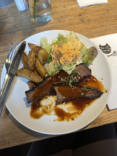 Read moreDurch Zufall, stolperte ich über dieses Lokal, dass nicht unweit von der Kongresshalle bzw. dem Verkehrsmuseum des Deutschen Museums ist.Auf der Karte der Homepage kann man lesen, dass die Küche etwas orientalisch angehaucht ist, womit man mich immer begeistern kann!Anruf, reserviert und gespannt auf den Nachmittag.Vor der International Ocean Film Tour, kehrten wir also hier ein. Da es ein schöner und sonniger Sonntag Spätnachmittag war, entschied ich spontan doch einen Tisch vor der Tür in der Sonne zu nehmen.Schnell war auch die Bedienung am Tisch, brachte die Speisekarte und fragte nach Getränken.Die Speisekarte ist übersichtlich und es gibt nicht all zu viel, jedoch sollte jeder etwas finden. Suppen, Salate, Auflauf und alles leicht orientalisch angehaucht.Ebenfalls gibt es eine Wochenkarte oder auf Tafeln auch Abendangebote.Für mich gab es Börek mit Sesamsosse, Gelberübengemüse und CousCous.Die Börek waren zwar etwas trocken, was sie dem reinen Rinderhackfleisch schuldeten, sowie war auch der Teller übersichtlich angerichtet. Das Auge das sonst mit ißt, hatte heute Sehstörung! Schade!Geschmacklich war es dagegen sehr gut, CousCous mit genug Biss und Gelberüben gaben einen fruchtigen Geschmack dazu!Der Service, war mit der steigenden Menge der Kundschaft leider heilos überfordert und es entspannte sich erst etwas, als die Verstärkung um 18 Uhr eingetroffen ist.Ach ja, drinnen war es auch sehr angenehm eingerichtet, zwar etwas dunkel, aber mit viel Holz und alles etwas Vintage, was den Raum bzw. das Lokal sehr...