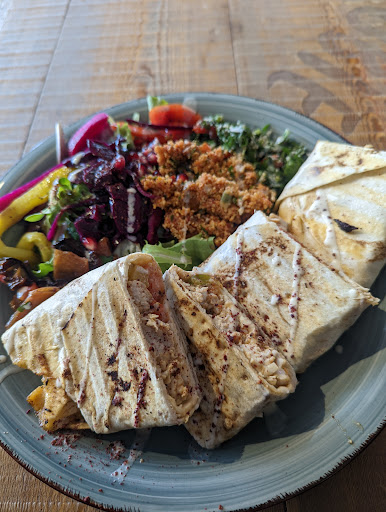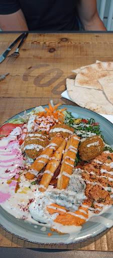 Von dem Moment an, als ich das Café betrat, spürte ich die herzliche und einladende Atmosphäre. Das Personal begrüßte mich mit einem warmen Lächeln und war äußerst hilfsbereit bei der Auswahl meiner Mahlzeit. Die Speisekarte bot eine beeindruckende Auswahl an Optionen, aber ich entschied mich für die Falafel und das Shawarma - eine Entscheidung, die ich nicht bereute.
