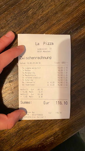 Read moreWould love to give 5 stars as it is a a authentic Italian atmosphere. Excellent pizza (and I am a pizza expert) with fresh high quality ingredients, melting dough but cooked ! Honestly, I savoured every tiny bit. Tasty and well worth the price.. Unfortunate that the service can be as warm as indelicate... I gave the waiter exactly 15.90€ (with one bill of ten and one of five and coins) for a 13.90€ order, he thanks me... And i am kindly awaiting for the change... After a while I kindly ask for i. He gave me a angry look and vey unpleasantly tell me that s a tip, then almost throwing me the coin. Should he have apologized for mistaking the change for a tip or kindly explain to me that it is custom to tip, I would not have taken my money... But considering his bad manner I thought I did not want to left one euro more than necessary in his pocket (noting there no reason to tip for the service either I was put at the corner edge of a table, with merely any space and he forgot to give me any tub water and I had to asked three times to get the bill). I would still recommend to eat there but just to be...