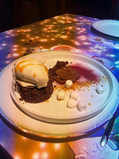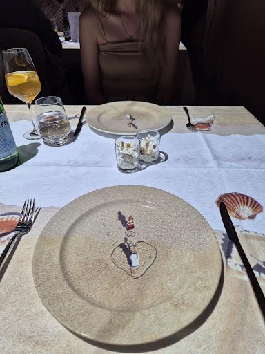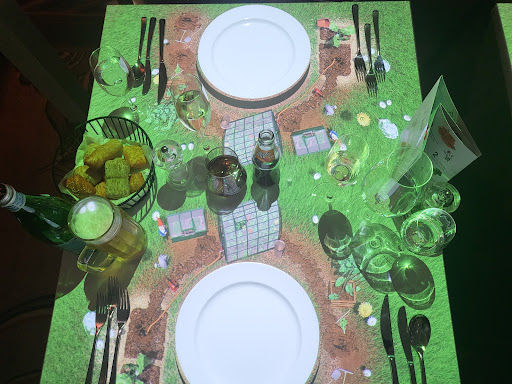 Die Idee mit der Projektion ist cool. Aber ich habe schon das Gefühl, dass man insgesamt für das Essen und den Service einfach zu viel bezahlt. Über 300 Euro für zwei Personen war das leider einfach nicht wert. Kann man einmal machen, aber man könnte auch für weniger Geld schöner und besser-wenn auch ohne coole Animation- woanders...