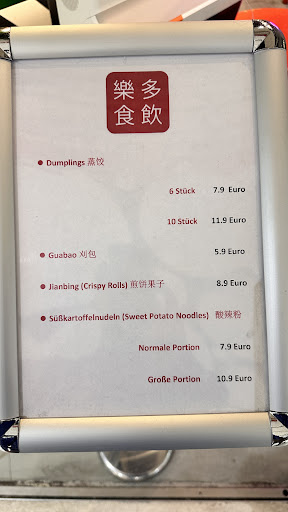 LeDu is one of my favorite spots in Munich for quick and tasty Chinese street food—especially their jianbing guozi (Chinese savory crepes)! You can choose from chicken, beef, or pork fillings—I personally recommend the chicken and beef. The outer layer is crispy, the fillings flavorful, and you can top it with either peanut sauce or spicy chili sauce. I always go with peanut—it’s delicious.