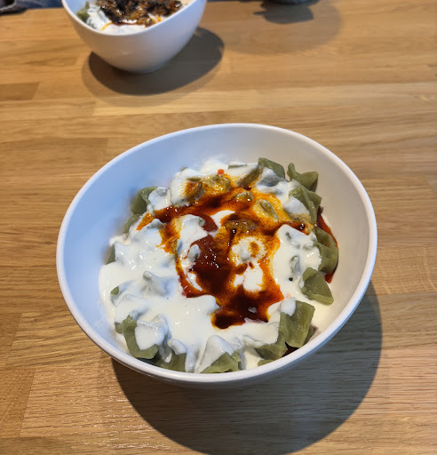 Nun zum eigentlichen Höhepunkt: die Maultaschen, Manti. Sie waren einfach himmlisch! Die Füllungen waren köstlich, egal ob mit zartem Rindfleisch oder Vegan. Die perfekt zubereiteten Maultaschen waren zart und dennoch bissfest, und die Kombination aus der Joghurtsoße und von Knoblauch war ein wahres Geschmackserlebnis.