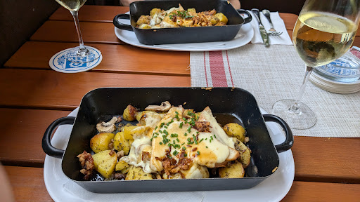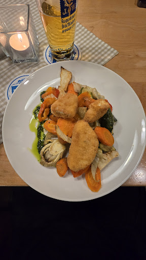 Read moreWe're staying at a hotel down the street and decided to give this place a try. It far exceeded our expectations. It's an off the beaten path hidden gem chock full of locals and a grandmother you want to take home with you. We ordered the first special on the menu, the potato dish allgau style; it featured roasted chicken with cheese and potatoes. My sister and I split this meal and the waitress was kind enough to split it for us. One meal was more than enough for two people. The potatoes were perfectly roasted along with onions, mushrooms, and pancetta. The chicken was roasted to perfection and covered with cheese. The pan sauce was beautiful. The atmosphere inside is cozy and extremely clean. Outside was also very nice and delightful on a cool evening. The staff was accommodating of our English and very kind. Again, the photo is one meal split into two. We had a wonderful experience and wish we had this restaurant on our continent so we could visit...