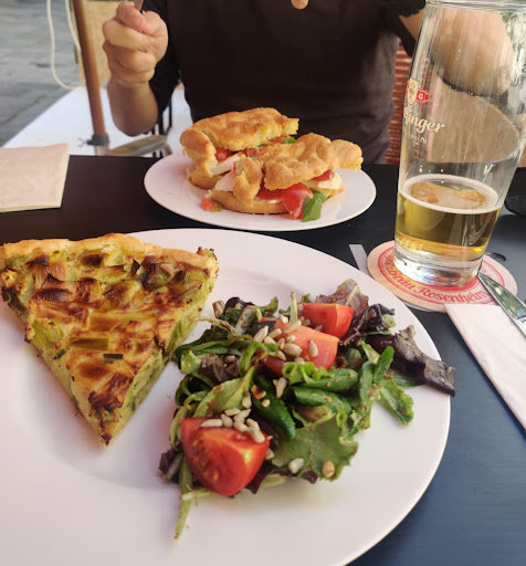 I stumbled upon this place because it is right across the street from my air bnb. My German is rusty but the women who worked here were so wonderful and welcoming and spoke to me in English. There are a few tables inside which was nice because it was warm outside. The food came out quickly and they helped me pick a nice cold drink. I just sat there enjoying the music and writing my travel journal. They have a lot of really cute outside seating as well that I could easily see enjoying in cooler temperatures. I recommend this place as a nice spot to stop by and just relax for a bit, have a drink with a friend and catch up, or have a minute to yourself. The only reason it didn’t get 5⭐️ is because there was a gentleman sitting outside smoking and the smoke was wafting in to the inside where I was but I do realize this may be a cultural difference. Where in from, smoking is illegal in and near...