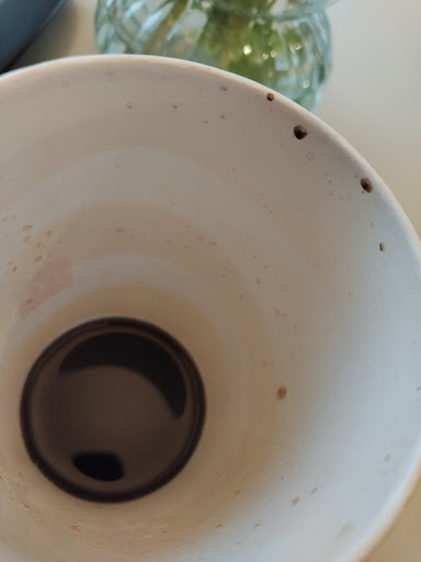 Additional problems including, cups with hairs sticking outside (see pic) and there're dirty stains inside the cups (see pic again).