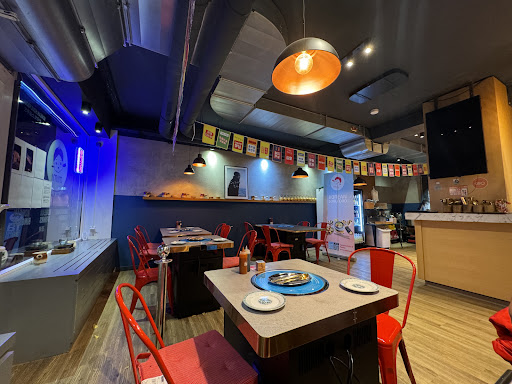 Read moreThis cute little Korean restaurant is a real find. Stepping inside, you're greeted by a charming interior with bright red chairs, gold tables, and built-in table grills that set the mood for a fun dining experience.