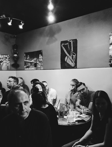 Jazz club & cocktail bar, hosting local & international jazz & blues musicians in a small interior.