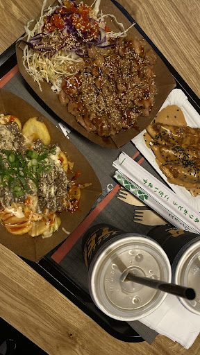 First of all, I was excited about the opening of this new restaurant and I think that their concept idea to combine two culturally different cuisines into one (Korean and German/European) is good. Furthermore, I enjoy their designs from commercial posters to the interior; which gives a nice and modern atmosphere. The staff was very fast and friendly too. Now to the food: We ordered Teriyaki Chicken with rice, Bulgogi BBQ Potatoes with Veggie Mandu, and two Yuza Lemon Iced Tea and we paid 23,80€ in total. The Bulgogi BBQ tasted good and had a nice smokey bbq aroma, the Veggie Mandu was okay but nothing special in my opinion, and the Teriyaki Chicken with rice was a bit bland too..we didn't enjoy the Yuza Lemon Iced Tea at all, can't recommend it. All in all, it is a nice option for a quick lunch and worth a try, but it just didn't...