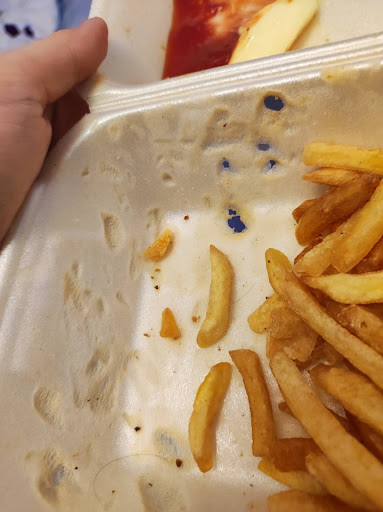 Der Dönnerteller kam in einem Papwärme behälter (normal), jedoch war in dem behälter auch der Salat gewesen (jeder der vom Kochen etwas versteht, weiss das man nicht etwas feuchtes wie Saucen & Salate im selben behälter mit Pommes und Fleisch verpackt) Was passiert??? Die Pommes werden feucht, ungeniesbar und der Geschmack vom Fleisch geht verloren.... das ist das 1x1 in der Kochausbildung!!!