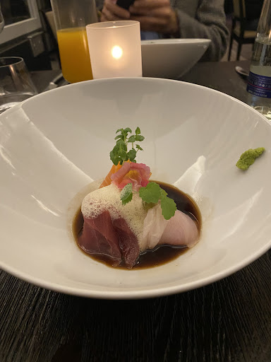 In more detail: we came through the "hidden table"-app and so were on a preset japanese menu. It started off with a very nice soup, but i wasnt very happy with the clams - very dry. The second course was sashimi, which was really good, with high quality fish and exceptional seasoning. The following courses were three nigiri each, hogh quality fish, only with one I had a bit of a mouldy aftertaste. Then we had a greeting from the kitchen, which was a fish-pudding-like thing, warm and very interesting but also unusual taste. Then we had "white maki", sushi with crab, cucumber and avocado with a white coating. The server didnt know what it was, i think it was a very thin egg-crêpe. Then we had some sake but no dessert, which we expected with the price of the menu (90€). What made me feel a little big queezy was the fact that we were alone. There was only one other couple but other than that, the restaurant was completely empty. And they had a sign in the bathrooms, reminding you to tip. In a restaurant with prices like that, i do expect the guests to...