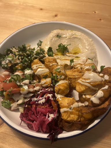 Read morewe stopped by here unplanned and were pleasantly surprised. the guy who worked there (the owner?) went all out to accommodate us, was super pleasant and helpful. he recommended a great wine and we had a lovely dinner. the food was quite delicious, the hummus is silky smooth and soo good, but, hence the 4 stars in that category, the tabbouleh had cilantro which I don’t like and was also not aware of that it could be an option, and my sabich plate hat just three small slices of aubergine in it which was a bit disappointing because it was also really yummy. would definitely go back and try one of the...
