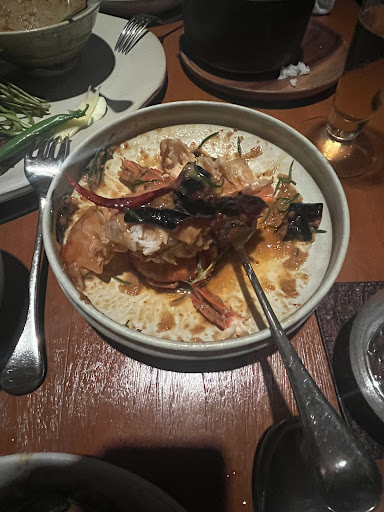 I could already sense it because I received my main dishes exactly 12 minutes after ordering. Nothing was freshly prepared, just freshly reheated, and this was clearly evident not only in the taste but also in the consistency of the dishes, especially the prawns. Therefore, there is no value for money under these conditions, and I must ask myself whether the gentlemen from Michelin perhaps had one too many when they awarded the star or if it might be an old bonus. I suspect the latter, as the ambiance of the restaurant is very good, very pleasant, very decorative, and valuable. The head waiter not only tried to sell us the most expensive items on the menu but also hoped for additional orders through their constant talking. Their constant food recommendations were unbearable. So, the overall visit was a huge disappointment. I spent far too much money for what I received on the table, but what annoyed me the most was that the dishes were not freshly prepared, as that is simply not feasible in 10...