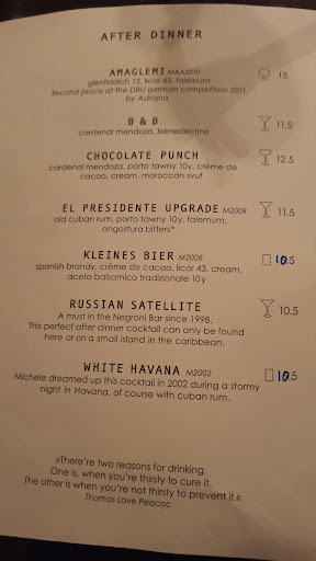 Read moreIch bin wirklich super enttäuscht. Ich hab mit einigen Freundinnen meinen 30. Geburtstag in der Bar gefeiert. Vorne weg, die Cocktails sind wirklich gut, jetzt kommt ein großes ABER. Einer der schlechtesten Service die ich erlebt habe bis jetzt. Wir haben die erste Runde Cocktails bestellt, das ging auch alles schnell und ohne Problem. Dann wollte ich einen 2. Cocktail haben. Ich habe über eine Stunde auf den Cocktail gewartet. Auf mehrfacher Nachfrage, warum das so lange dauert, hätte ich eine nette Antwort gut gefunden, wie z.B. tut mir leid, dein Cocktail würde übersehen, kommt sofort, oder es ist so viel los, tut mir leid, der Cocktail kommt gleich. Aber leider war das nicht die Antwort, damit hätte ich leben können und es wäre alles gut gewesen, kann ja alles Mal passieren. Doch leider ist das Personal sehr motzig geworden, dass ich doch warten soll und der Cocktail kommt. Und da ich ein Cocktail habe der geschüttelt werden muss, dauert es länger, denn die Cocktails die nicht geschüttelt werden müssen, werden zuerst gemacht?! Komische Aussage, das bedeute, mein Cocktail kommt nie an. Man sollte die Cocktails der Reihe nach machen, wie sie bestellt werden. Noch dazu hat man es einfach mit bekommen, das andere Tische in der Zeit wo ich auf den 2. Cocktail gewartet habe, 2 weitere Drinks bekommen hatten, darunter auch Cocktails zum Schütteln. Finde ich geht nicht, aber beim bezahlen und rausgehen, hat man es auch gemerkt, es stehen genügend Menschen lange vor der Bar und einen Platz zu bekommen und das hat man von den Kellnern auch zu spüren bekommen, das sie auf keine Gäste angewiesen sind, weil sowieso die Leute kommen. Sehr sehr schade, wir kommen auf jeden Fall nicht mehr hin, auch wenn der Cocktail gut war. Aber für mich gehört der Service einfach mit dazu und es gibt sicherlich genügend andere Bars, mit guten Drinks die sich über ihre...