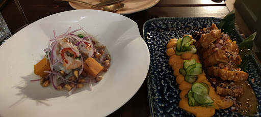 Read moreWir waren am Freitag Abend essen und hatten für 8 Leute reserviert. Als wir ankamen teilte man und freundlich mit dass wir uns auf dir Barhocker setzen dürfen. Nach einer kurzen Diskussion mit einem etwas überforderten Mitarbeiter, setzten wir uns an den langen Tisch mit den Barhockern. Kurze Zeit später bekamen wir kleine Karteikärtchen mit einem QR Code drauf, um zur Speisekarte zu gelangen. Diese konnten wir (8 Personen) aufgrund des schlechten Empfanges nur mit Schwierigkeiten öffnen. Auf der Karte angelangt, fiel aufgrund fehlender Struktur und Übersichtlichkeit (Vorspeise, Hauptgericht, Nachspeise) etwas schwer sich für ein Gericht zu entscheiden. Das wirklich sehr schön angerichtete und sehr leckere Essen ließ zu unserer Zufriedenheit nicht lange auf sich warten. Vor allem der Fisch kam bei allen sehr gut an. Auch für die Vegetarier unter uns konnte etwas gezaubert werden. Leider wurden wir alle nicht wirklich satt. Aber das gehört vielleicht auch zu dem Konzept. Die Drinks (Pisco Sour) waren sehr lecker und ebenfalls sehr schön angerichtet.