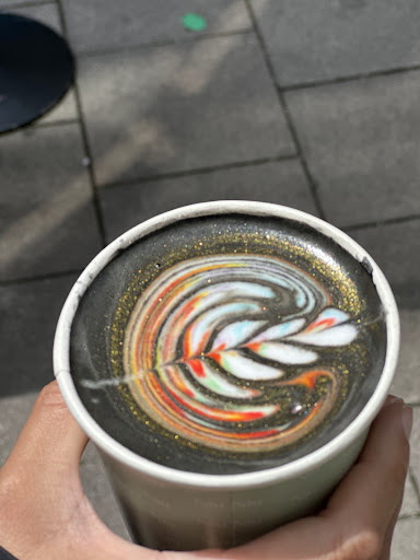 Read moreI spontaneously went there when we noticed it. I already knew it from different Post on social Media and well... That's what it is. If you want to meet up and post about how nice and unique the Café is, this is the right place. I like to call it an social media hot spot. The food personally was overpriced and you could've get something way tastier and fillinger for the price. It cost 2€ more to add decor on hot chocolate, these rainbow cappuccino cost about 8-9€ and a creep cake about 7€. Hot chocolate 6-8€. I had hot chocolate without decor and an black charcoal creep cake. The hot chocolate was okay, nothing special and I could've made it at home. The creep cake was a bit disappointing. Didn't tasted like anything particular. We were seated at first with two other people on a big round table. We were told beforehand so that isn't the issue, although expect like a big square table where everyone got an chair, instead it was just a big couch bench. It wasn't that much of a problem at first since we were just 4 people on the table, but after we almost finished two others got seated next to us, making us trapped in the middle. After that we decided to go. The atmosphere is, well, picture worthy, but that's about it. I found it a bit trashy and very overstimulating. With closer look even cheap. The volume was immensely loud and I couldn't concentrate or properly hear what my partner next to me said. Although it is a visit worth, it's not an place I would go twice. Honestly I'm just disappointed cause my expectations were much higher and everything was...