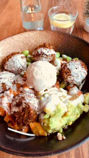 I came here on a Thursday afternoon around 3.30pm and it was not too busy. A welcoming smile from Maria and Aziz made me feel welcome immediately. I ordered the falafel bowl with hummus, tahini, sweet potato, greens, grains, chickpeas, carrots, avocado and edamame and it was very good. Aziz, who has a many years of experience in Gastronomy in Munich, proudly shared that the falafel are a speciality and amongst peoples favorite dishes.