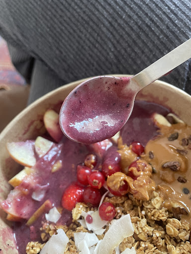 Dafür hingegen wird das Essen und die Getränke hübsch angerichtet und damit komm ich auch zu meiner Beurteilung „Wanna-Be Instagram Cafe“, denn geschmacklich kann das Essen nicht mit vergleichbaren Gastronomen mithalten. Die Acaibowl, die ich mit extra Peanutbutter bestellt habe, war mittelmäßig. Die Extra Peanutbutter Menge gleichte ungefähr einem Esslöffel, was ich sehr schade finde, da diese im Verhältnis zu wenig für die ganze Bowl war. Die Portion war für mich ausreichend und gut sättigend. Mein Vergleich bei der Bewertung der Acaibowl ist die von Wagners Juicery, welche für mich die beste Münchens ist. Getränke sind in Ordnung, kann man machen.