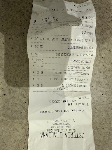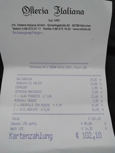 Upon entry we asked for antipasti for the table and prosecco. They charged us 90 euro for the wine and 100 for the antipasti. I guess they have to fit in their menu options, but this is in no way reasonable (20 bucks for some tomato and mozzarella).