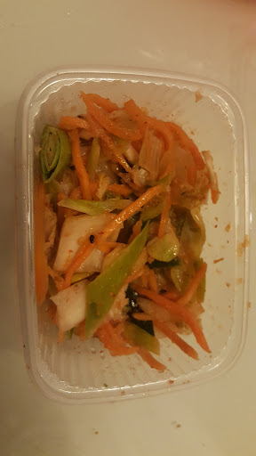Last but not least Kimuchi. Ich kenne Kimuchi als scharf eingelegtes aber danach milchsauer fermentiertes Kraut. Dieses Kimuchi war zwar scharf eingelegt aber keinesfalls klassisch fermentiert was auch so von der Mitarbeiterin bestätigt wurde dass es nicht fermentiert wurde. Aber dann ist die Bezeichnung Kimuchi irreführend.