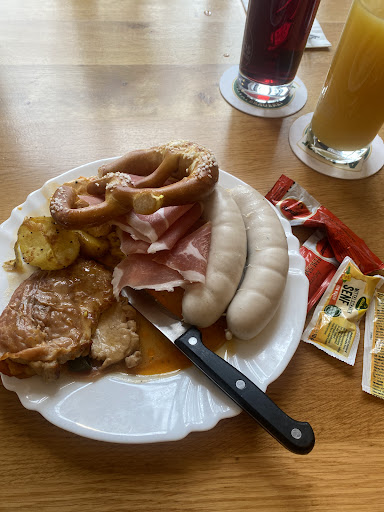 "Frühstück": -Basic Müsl mit kalter Milch (kein Apfel o.ä. dazu) -Crossaints (die waren immerhin OK) -TK-Brezen (nicht mal gescheit aufgebacken, teilweise noch roh) -Weißbrot Salami -Schinken -Tomate Mozzarella