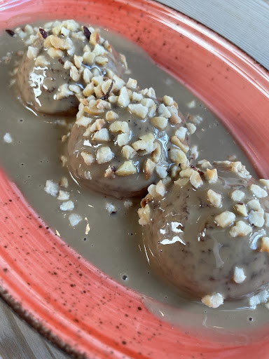 We had the Vegi Teller Kalt â a plate with 4 different cold salads from an assortment of many more â and the Mama's Köfte. Both were super delicious and not at all "heavy" in the stomach. The bread... Oh, the bread... If I could, I would have brought a batch home. Momo suggested we tried the dessert. I can't remember the name but it was like 3 small cakes dipped in tahin. Unfortunattely, my friend didn't like the tahin flavour but Momo was very kind and brought a plate with extra cakes with no tahin just for him.