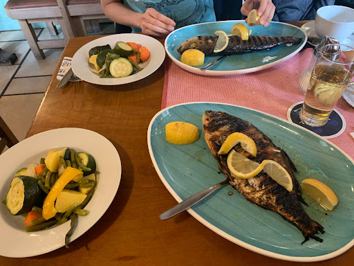 Our dishes were huge disappointments. The vegetables: potatoes and carrots were raw and partly cold on my side (warm on the outside and cold inside) ; on my wife's side, all of them were cold though the plate was hot. *We mentioned the issue and the kitchen kindly gave us a small new plate of well-cooked veggies. Delicious but they charged extra for it. The fishes were nice ingredients but the whole "burnt" flavour was stronger than the fish's fresh flavour. Worst situation in the meal time was the unavoidable mix between all those big black burnt bits with every bite of fish. No this is not normal in comparison with the other charcoal-grilled Greek dishes. These really stayed way too long on the grill😂 Please try to understand instead of telling us "This is how we do stuff".