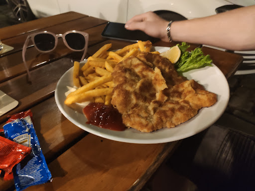 The food tastes like warmed up industry food. I ordered a "Jägerschnitzel". What I got was a Schnitzel without crust and way too much sauce.