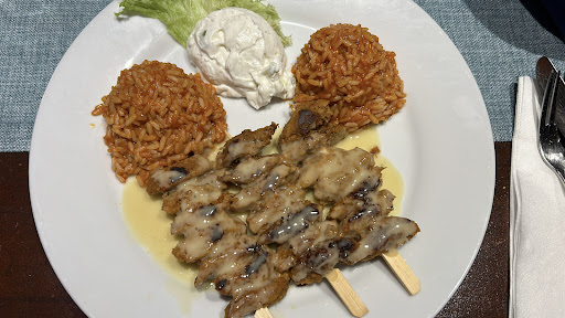 Read morea nice enough restaurant with prompt service and large portions. We ordered a meal for two and received 2 side salads, 2 plates with portions of boiled potatoes and a large plateful of meet - lamb and pork. It was tasty but really too much - however as we saw another diner having a "doggy bag" we asked if we could also take away the left over meat, which they did without a problem. If we go again, we wouldn't have a starter -we had the garlic bread, with was very garlicy - too strong for our...