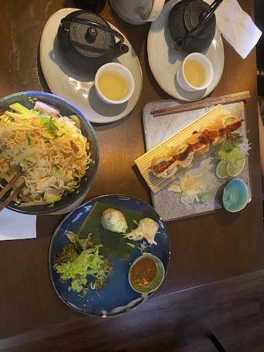 Das Essen war sehr gut und ist auch zeitnah nach der Bestellung gekommen. Aber leider gibt es keine geschlossenen Wasserflaschen, nur Wasser in Glässer, dass finde ich persönlich nicht so prickelnd. Dann doch als abgekochtes Wasser über den Ingwer-Tee. War gut und kann auch getrunken werden, die es nicht so scharf wollen. Jetzt zum Service: Das Mädl hatte uns zwei Tische zur Auswahl angeboten. Als wir den in der Ecke nehmen wollten, hieß es plötzlich, der ist reserviert. Das Mädl war sehr hilfsbereit, aber aktuell, obwohl es noch nicht so voll war, sehr konfus. Wir hatten unsere Vorspeiße und plötzlich erhielt ich ein Ca ri mit Ente, obwohl ich gebratene Nudeln mit Hühnchen (mi tom xao) bestellt hatte. Nachdem ich das reklamiert hatte, wurde der Teller an den nächsten Tisch gebracht. Hallo Gastro, wenn ein Essen bei einem anderen Kunden am Tisch gestanden ist, geht das garnicht, dass es zum nächsten wandert, speziell in der steigenden Covid Zeit die aktuell wieder anläuft. Am Nachbartisch hatte eine Dame einen Vorspeisenteller bestellt. Dieser war allerdings für 2 Personen, stand auch in der Karte. Hatte die Dame voraussichtlich übersehen. War ganz erstaunt, als die riesen Platte geliefert wurde und die Servicekraft sagte zu den beiden, das ist für 2 Personen. Wäre besser gewesen bei der Bestellung an den Gast das zu kommunizieren. Speziell wenn man die Bestellung aufnimmt, da die Portionen sehr gut sind. Aber das Essen sah gut und ansprechend aus und die Dame sage nur, dann storniere ich das Hauptgericht, dass wird zu viel. War kein Problem. Hinter uns war ebenfalls ein Tisch, der auch eine falsche Essenbestellung geliefert bekommen hat. Rechnung: Leider kann man an der Rechnung nicht erkennen, was gegesen wurde es besteht nur aus Artikel und Zahlen und Preise. Mal schauen, was der STB sagt wenn man das Geschäftsessen von der Steuer absetzen möchte! Jetzt Ambiente: Wie man es von einem Asiaten gewohnt ist. Allerdings war unser Tische etwas klebrig. Die Teetasse war auch nicht ganz sauber, aber ließ sich schnell mit der Serviette wegputzen. Etwas mehr Sauberkeit und mehr Einsatz im Service, dann ist der Asialaden eine gute Lokation, speziell da es erst Richtung Grünwald die nächsten top Lokations gibt. Wichtig für den sichern Platz: Immer reservieren, da der Laden immer voll ist und man sonst keinen Platz findet, speziell jetzt zur nassen Jahreszeit, da der Garten nicht die optimale Lösung...