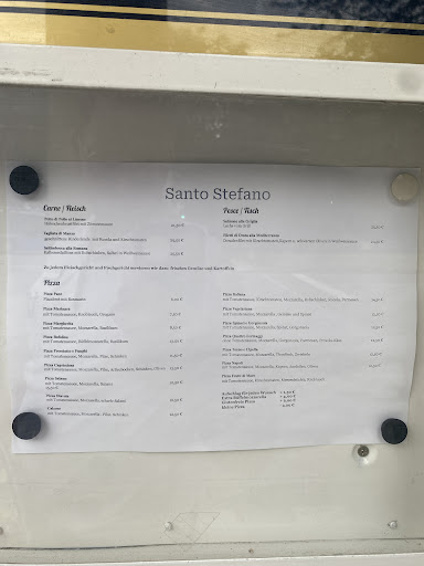 Read moreKleines, schlicht und dennoch gemütlich eingerichtetes italienisches Lokal. Übersichtliche Speisekarte, hauptsächlich mit Pasta und Pizza, sowie einigen wenigen Fleisch- und Fischgerichten. Meine Frau und ich hatten Pizza Capricciosa und Pizza Napoli bestellt. Beide kamen mit einem schönen Teigrand, waren üppig belegt - unter anderem mit echten dunklen Oliven - und schmeckten sehr gut. Solide Auswahl bei den offenen Weinen (Nero d'Avola, Montepulciano, Lugana, Grillo etc.). Die Bedienung war schnell und überaus freundlich. Besonderes gibt es im "Santo Stefano" nicht zu entdecken, dafür wird aber beste klassische cucina...